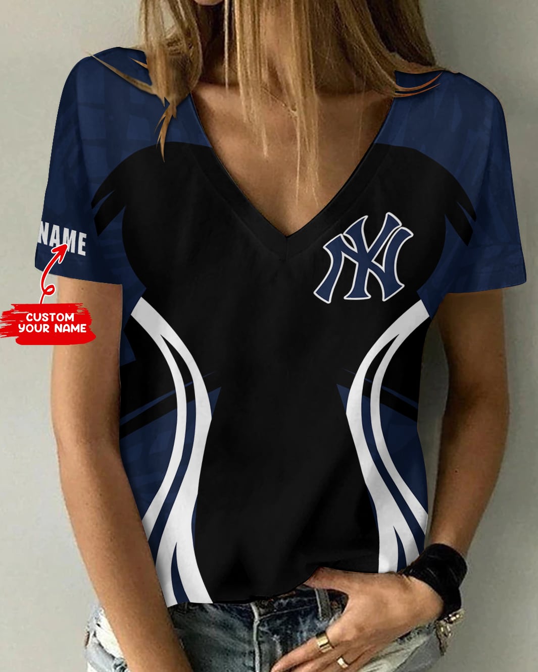 New York Yankees Personalized V-neck Women’s T-shirt