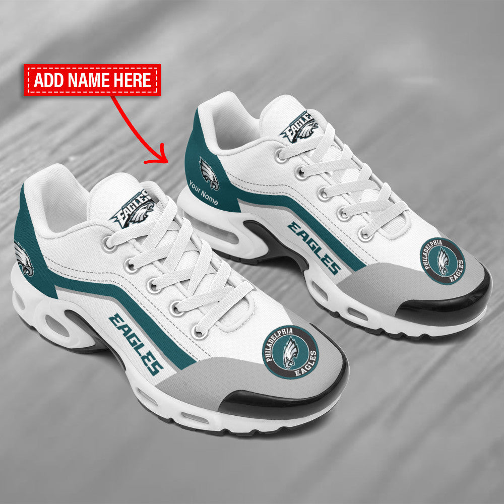 Get your game on with the officially licensed Philadelphia Eagles Personalized Plus T-N Youth Sneakers. Perfect for young fans, these sneakers combine style and comfort for a winning game day outfit!