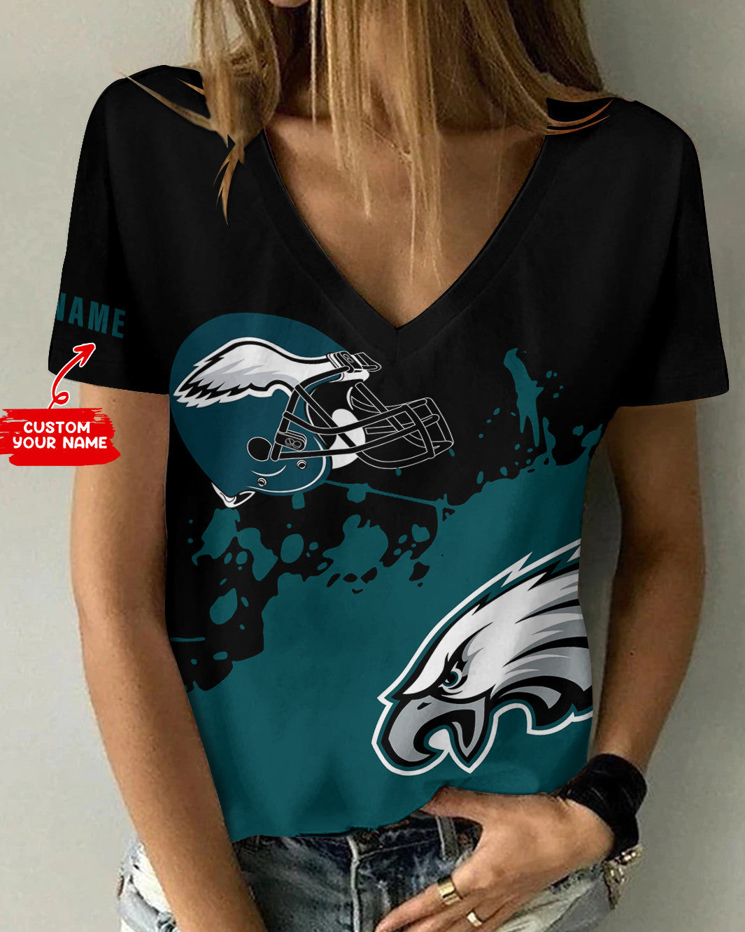 Philadelphia Eagles Personalized Summer V-neck Women T-shirt