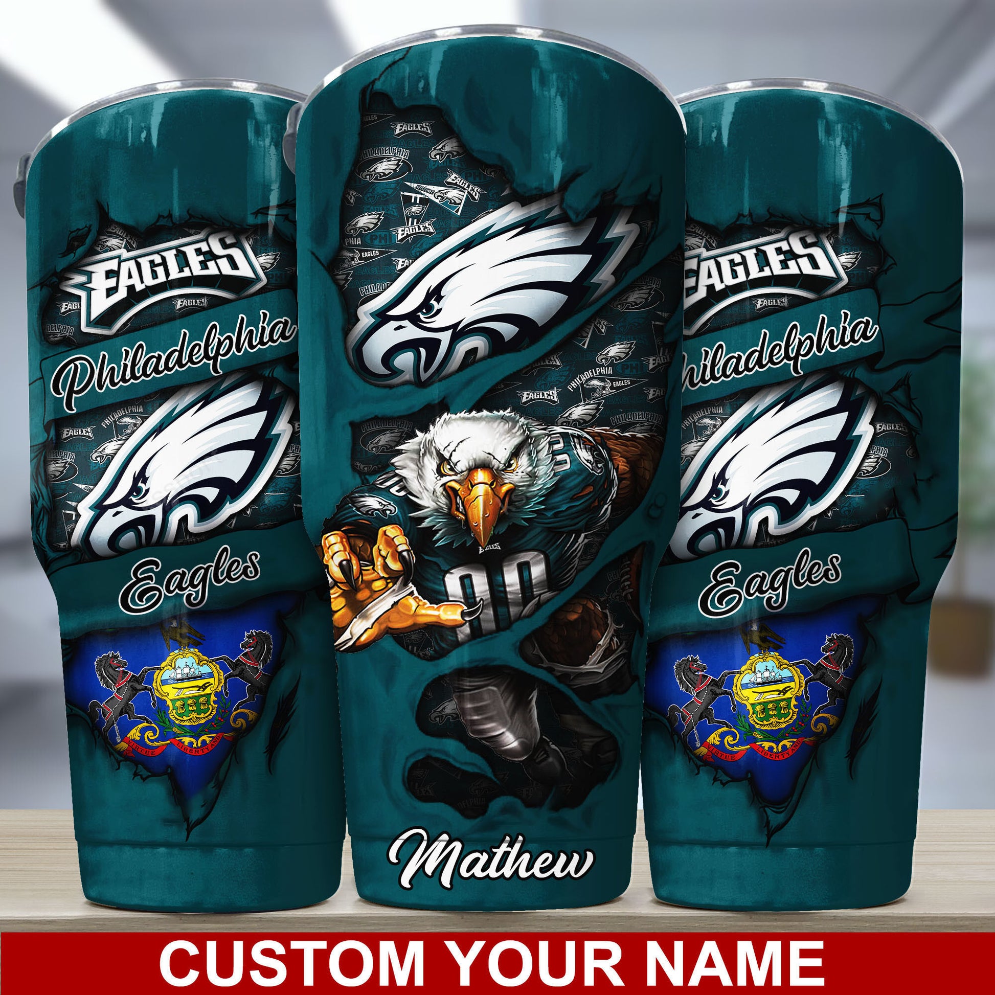 Whether you’re at home, tailgating, or on the go, this Philadelphia Eagles tumbler makes an excellent gift for football fans and is a must-have for game day attire. Order now and elevate your fan gear with this unique personalized tumbler!