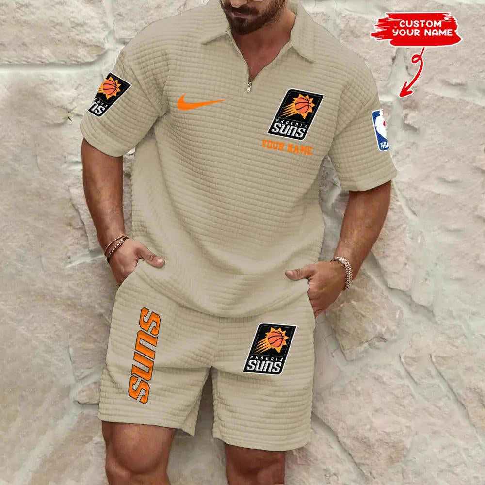 Phoenix Suns Men’s Waffle Pattern Half Zipper Shirt And Shorts AZBT2DWSS000163