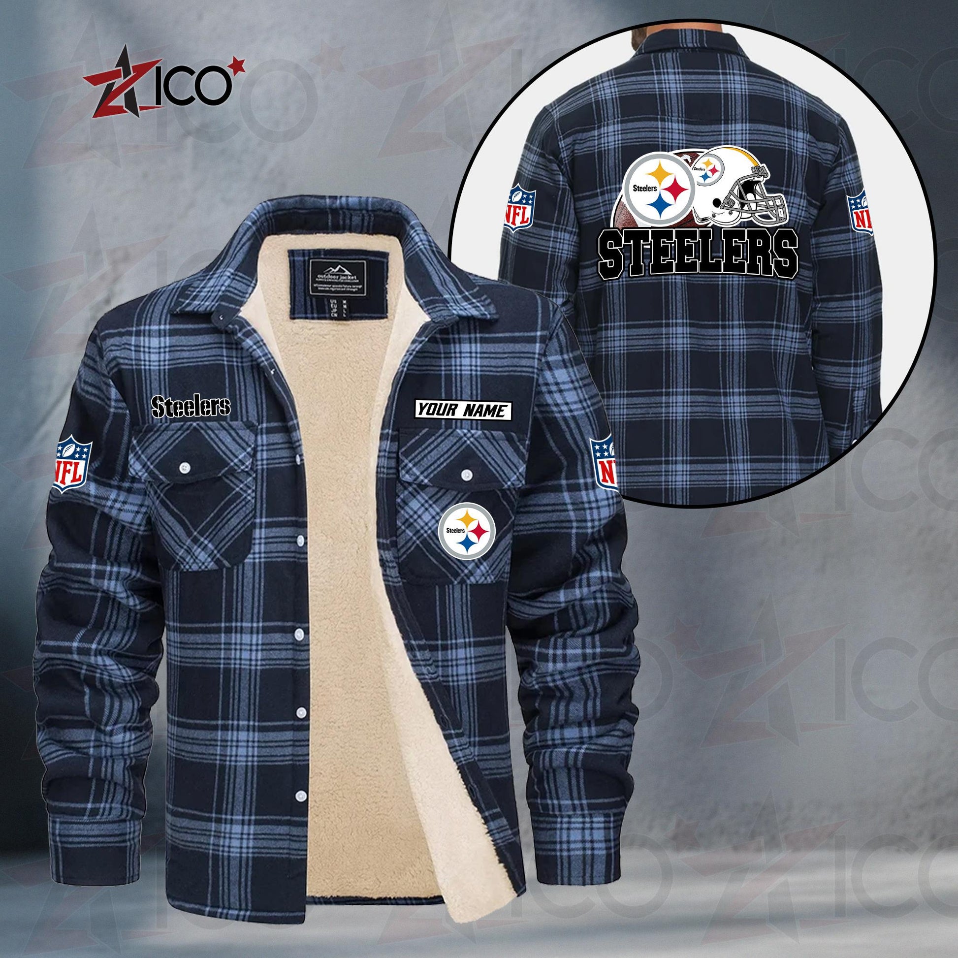 Pittsburgh Steelers Fleece Flannel Plaid Jacket TG123