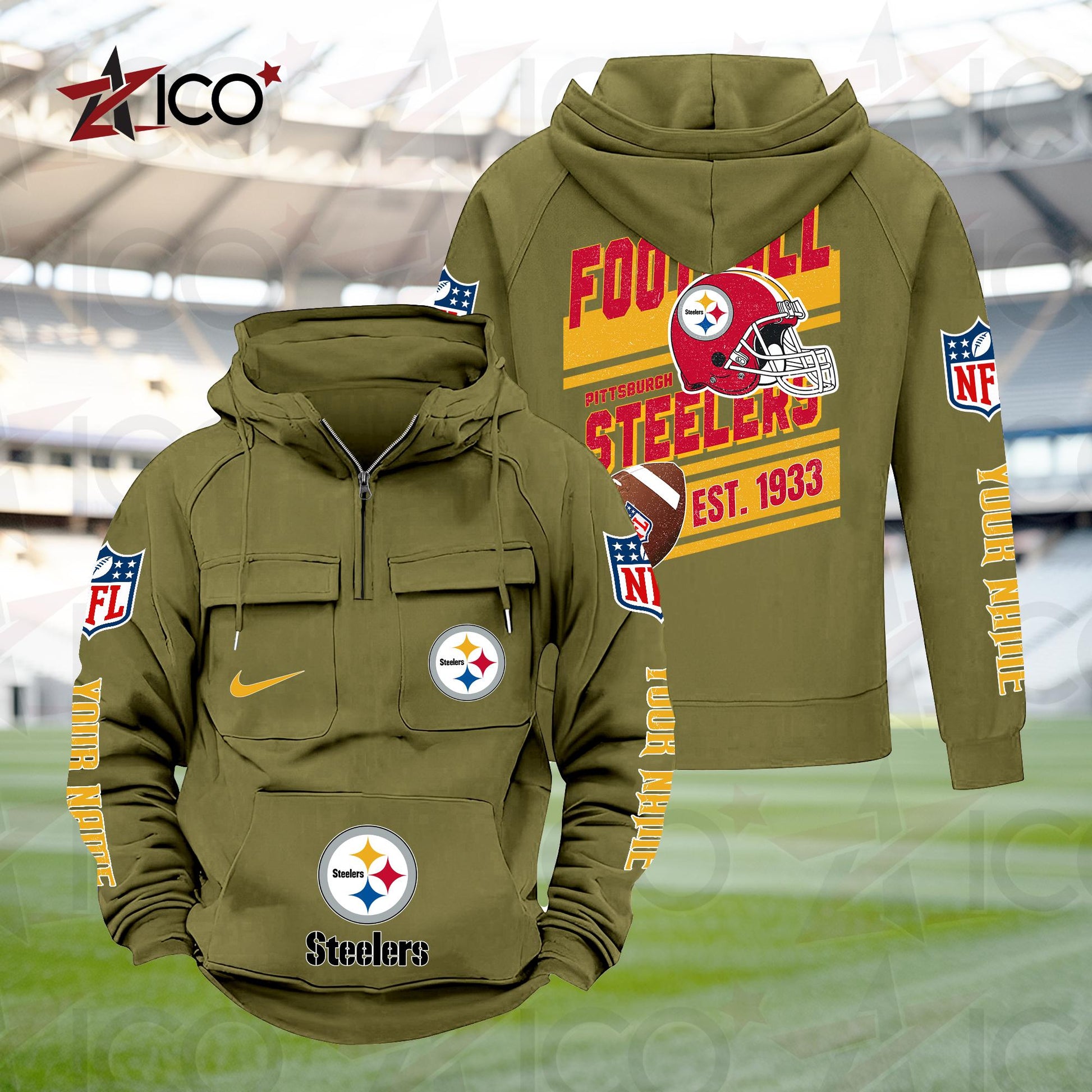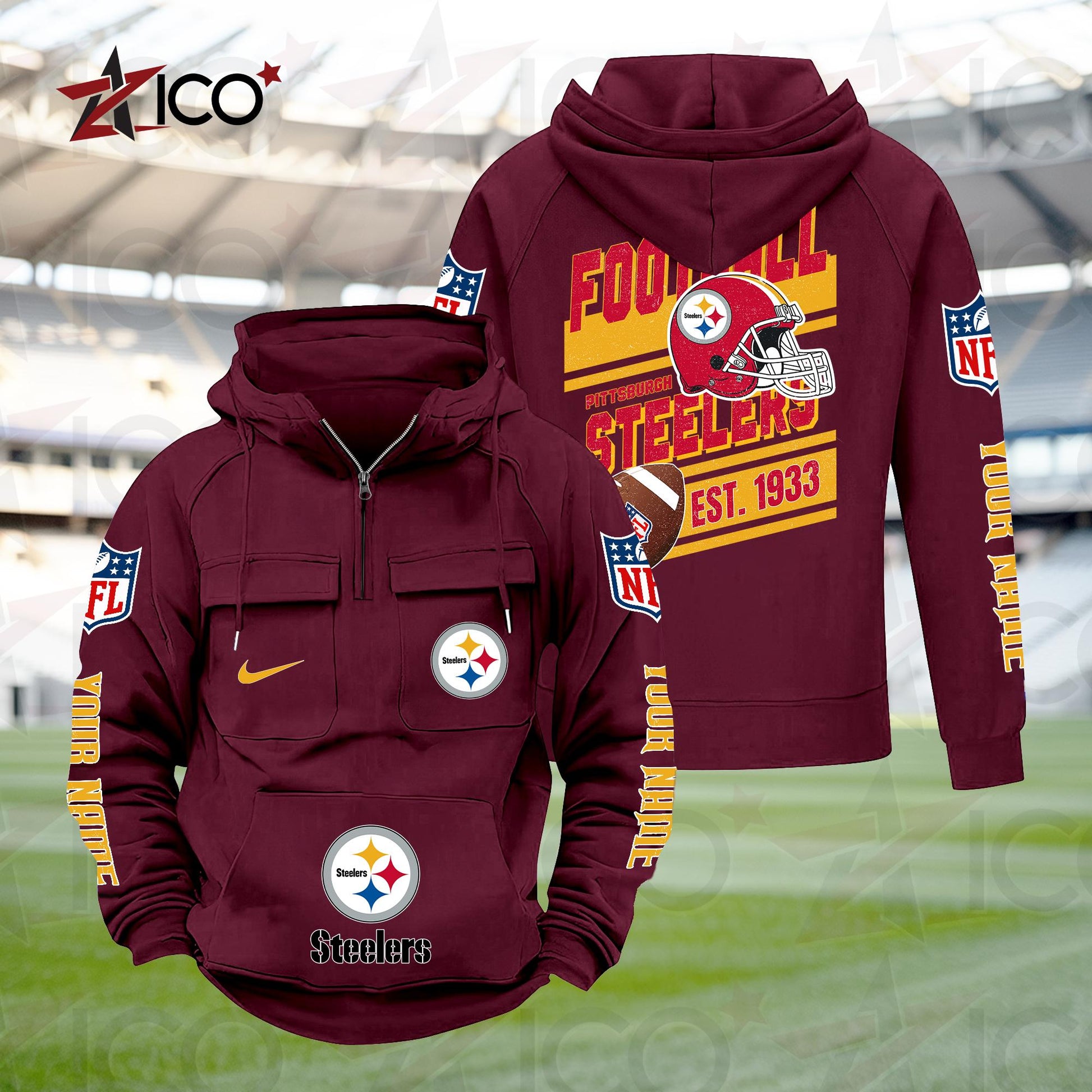 Pittsburgh Steelers Personalized Multi-Pockets Zip Hoodie New 2025 AZTGMZHD000247