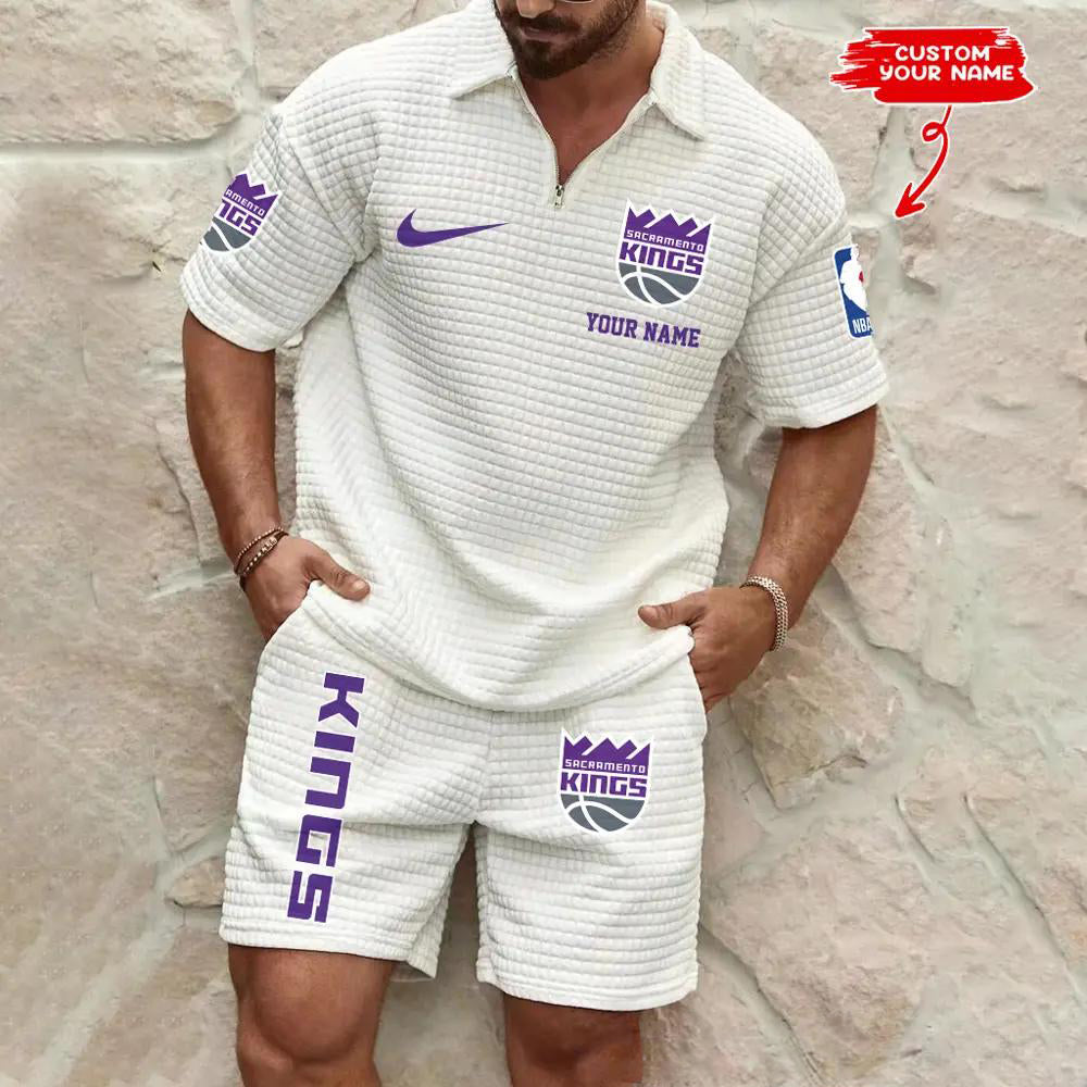 Sacramento Kings Men’s Waffle Pattern Half Zipper Shirt And Shorts AZBT2DWSS000170