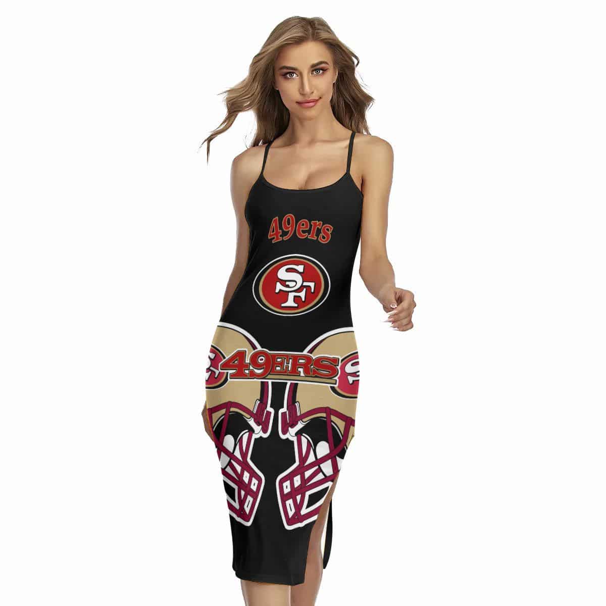 Stand out on game day with the San Francisco 49ers Women’s Back Cross Cami Dress. This stylish and sporty dress is made from 95% Polyester and 5% Spandex, offering comfort and flexibility for any occasion. Available in black and white sewing thread, we customize the color based on your chosen print pattern. With its all-over print design, this dress is the ultimate NFL fan apparel. Don’t miss out on this limited edition team merchandise—order now!